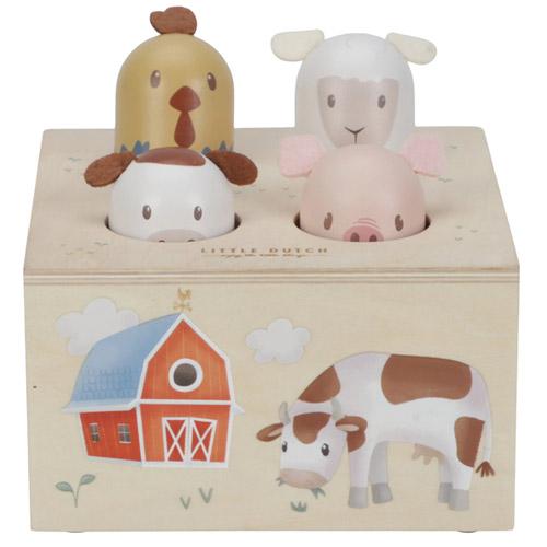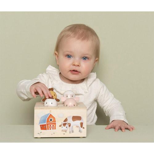 The sturdy wooden box of this interactive pop-up toy is decorated with friendly illustrations from Little Farm, designed to stimulate your little one's imagination.