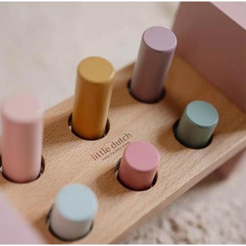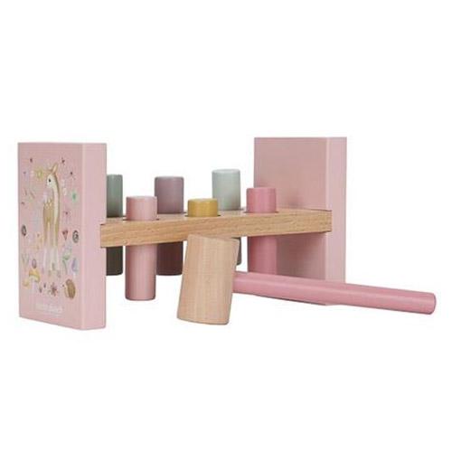 Use the hammer to hammer the 6 colored rods into the wooden hammer bench and explore the magic of Fairy Garden.
