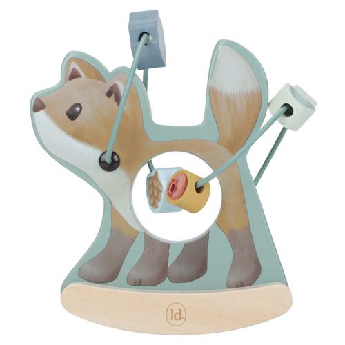 Let the beads run around the wooden fox one by one while it fluctuates back and forth.