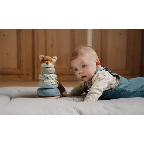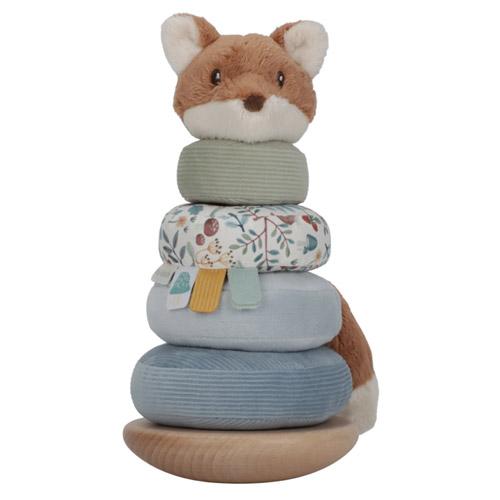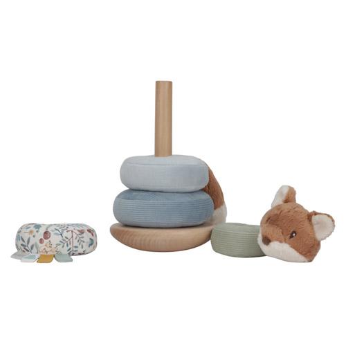 Stack the rings on the wobbly base and let the fox dance and spin!