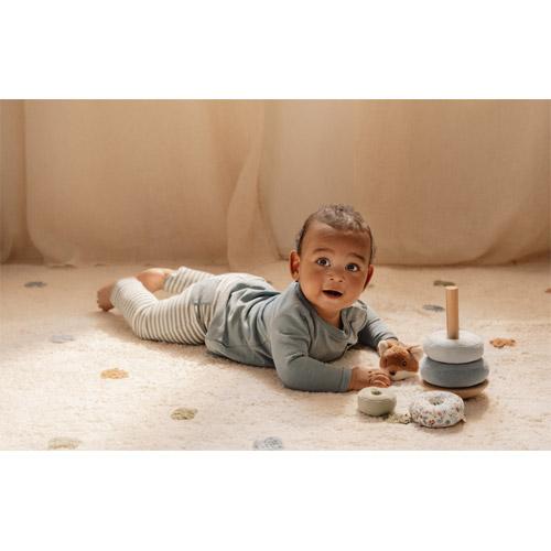 This tumble stacker is designed to develop hand-eye coordination through fun and hands-on play.