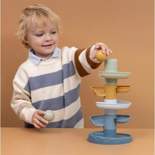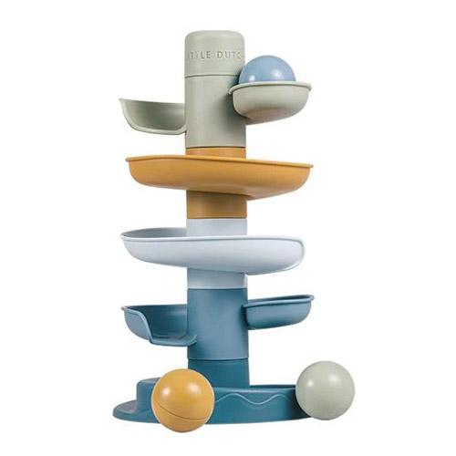 The spiral tower contributes to the development of hand-eye coordination and teaches little ones about cause and effect, making it both fun and educational to play with.