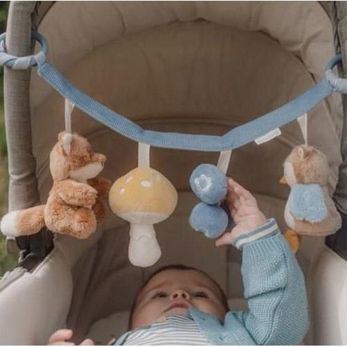 Discover the four cute toys from the Forest Friends collection on this pram toy.