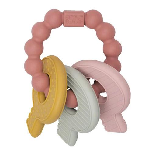 To relieve the pain, Little Dutch has designed a multifunctional teething ring in the shape of a bunch of keys.