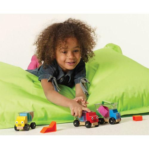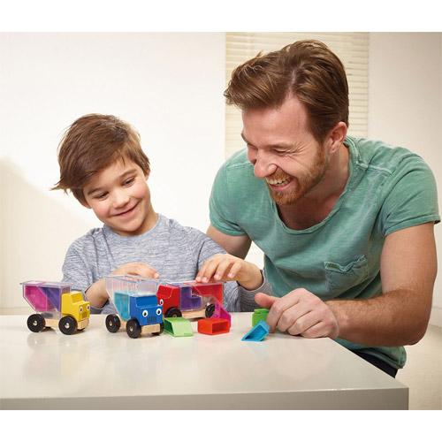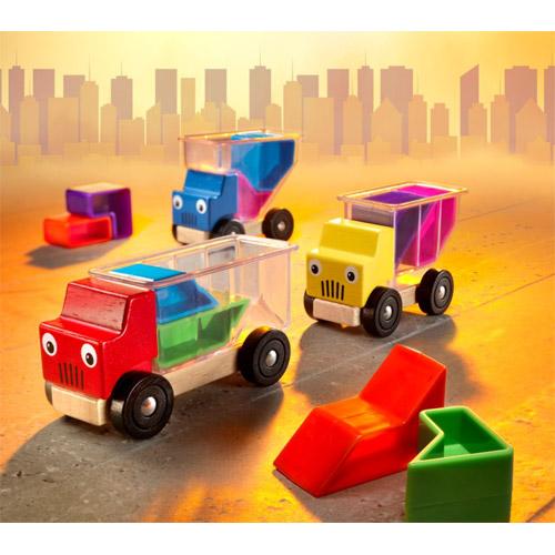 In the box : - 3 wooden trucks with transparent loading beds.