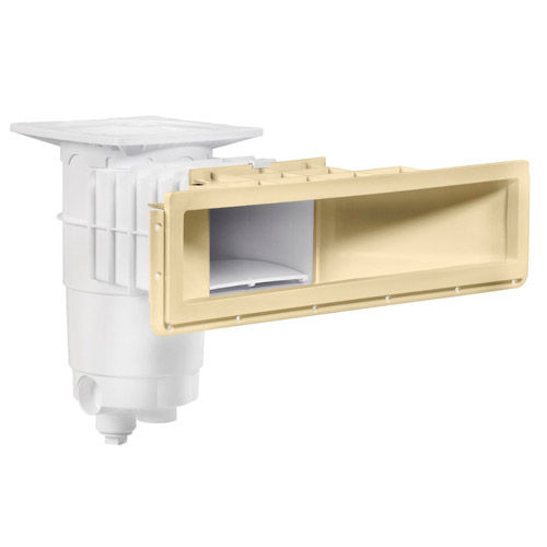 Modèle: A600. Matériau: ABS anti-UV. Raccordement: filetage extérieur 2"M ou filetage intérieur 1"1/2F ou raccord 50 mm. Type de bain: béton avec revêtement. Couleur: sable. Un modèle pour les baignoires de haute qualité, permet d'atteindre un niveau d'eau extrêmement élevé. Ce nouveau modèle, le A400, se distingue dans la gamme des skimmers design Weltico. ABS spécialement traité pour être résistant aux UV.